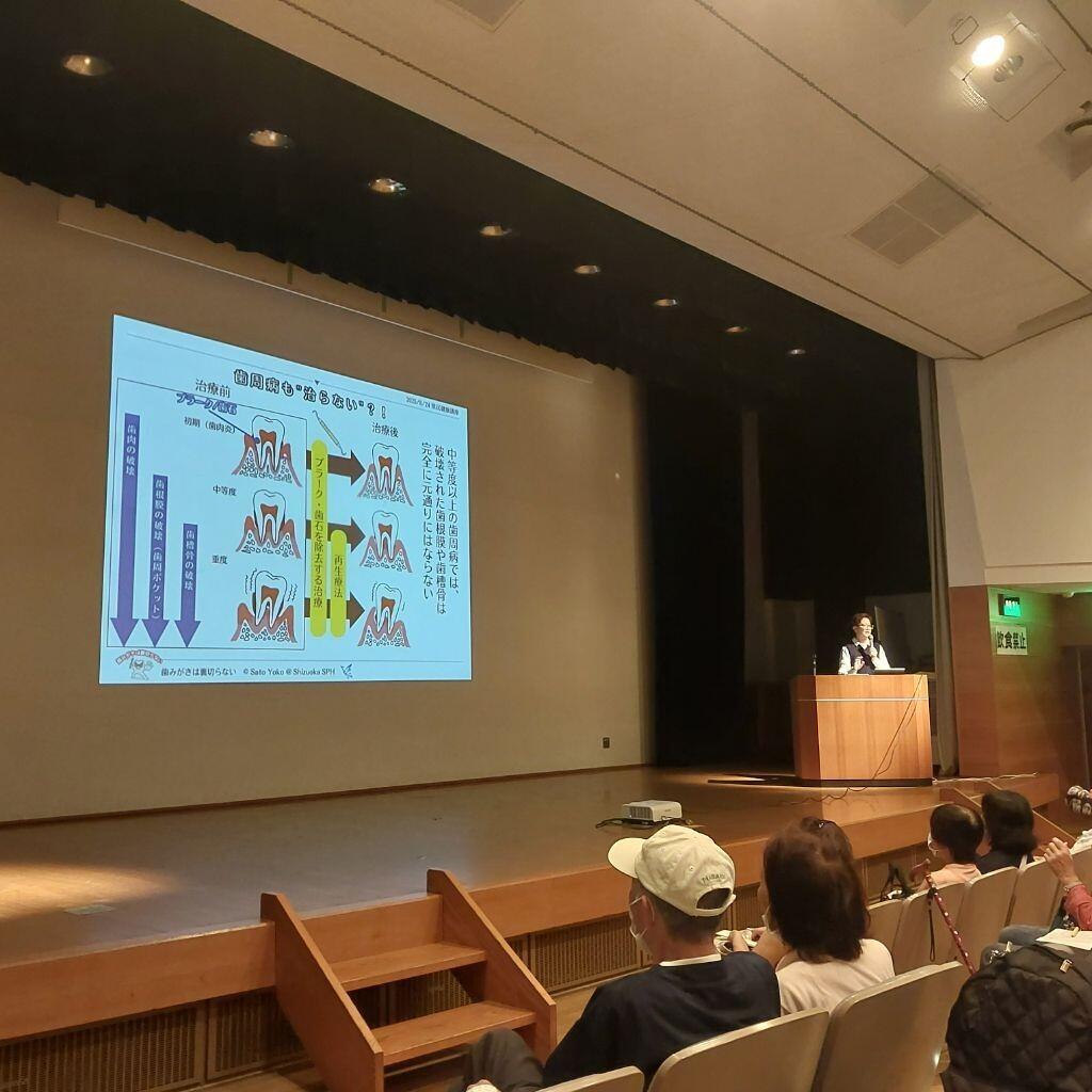 8月24日(日)に静岡県及び静岡県健康福祉交流プラザの共催で、県民の日健康福祉交流プラザまつりが開催され、本学の佐藤洋子講師が、「歯磨きは裏切らない」をテーマに、むし歯や歯周病の予防に関する講演を行いました。